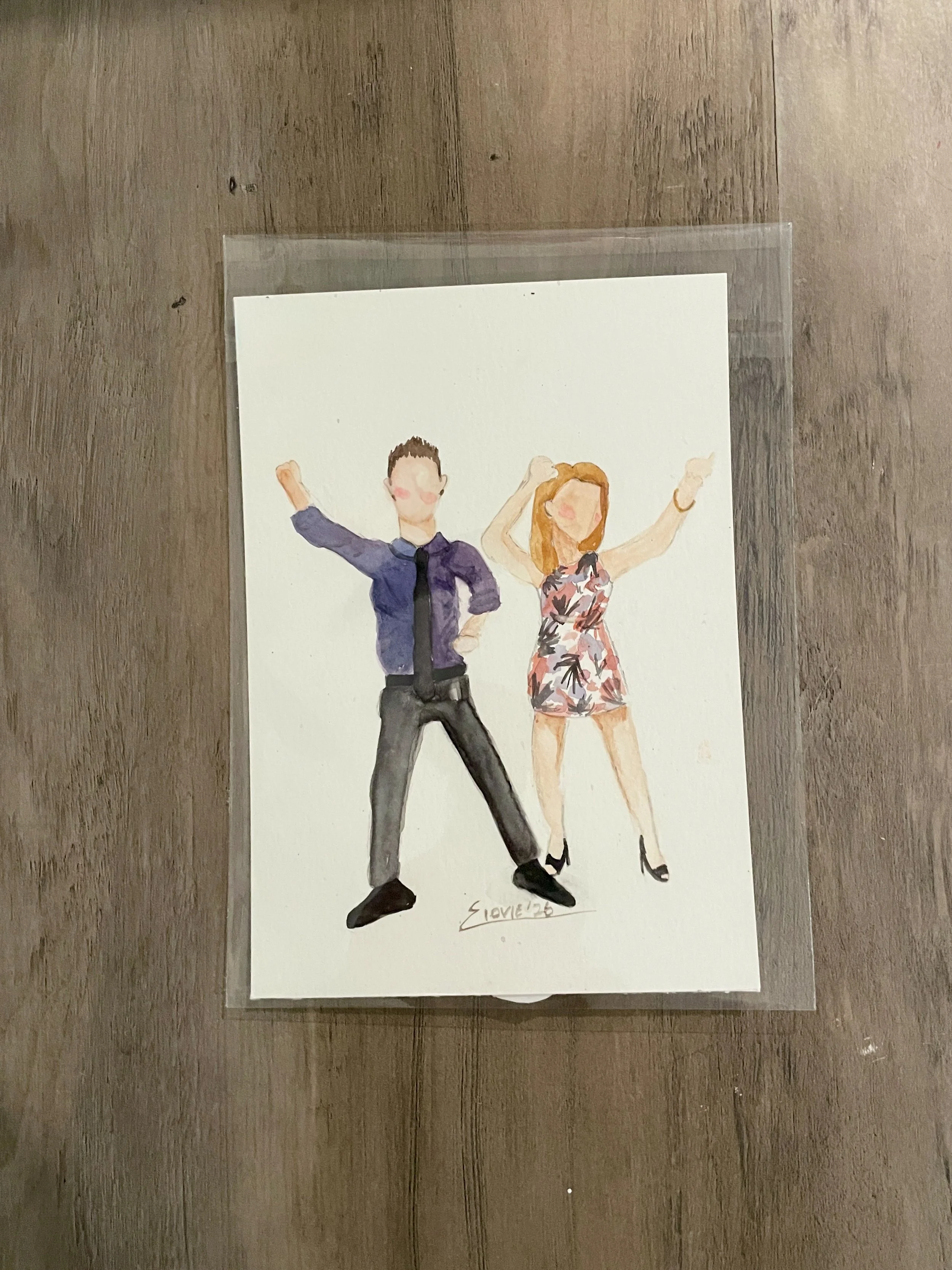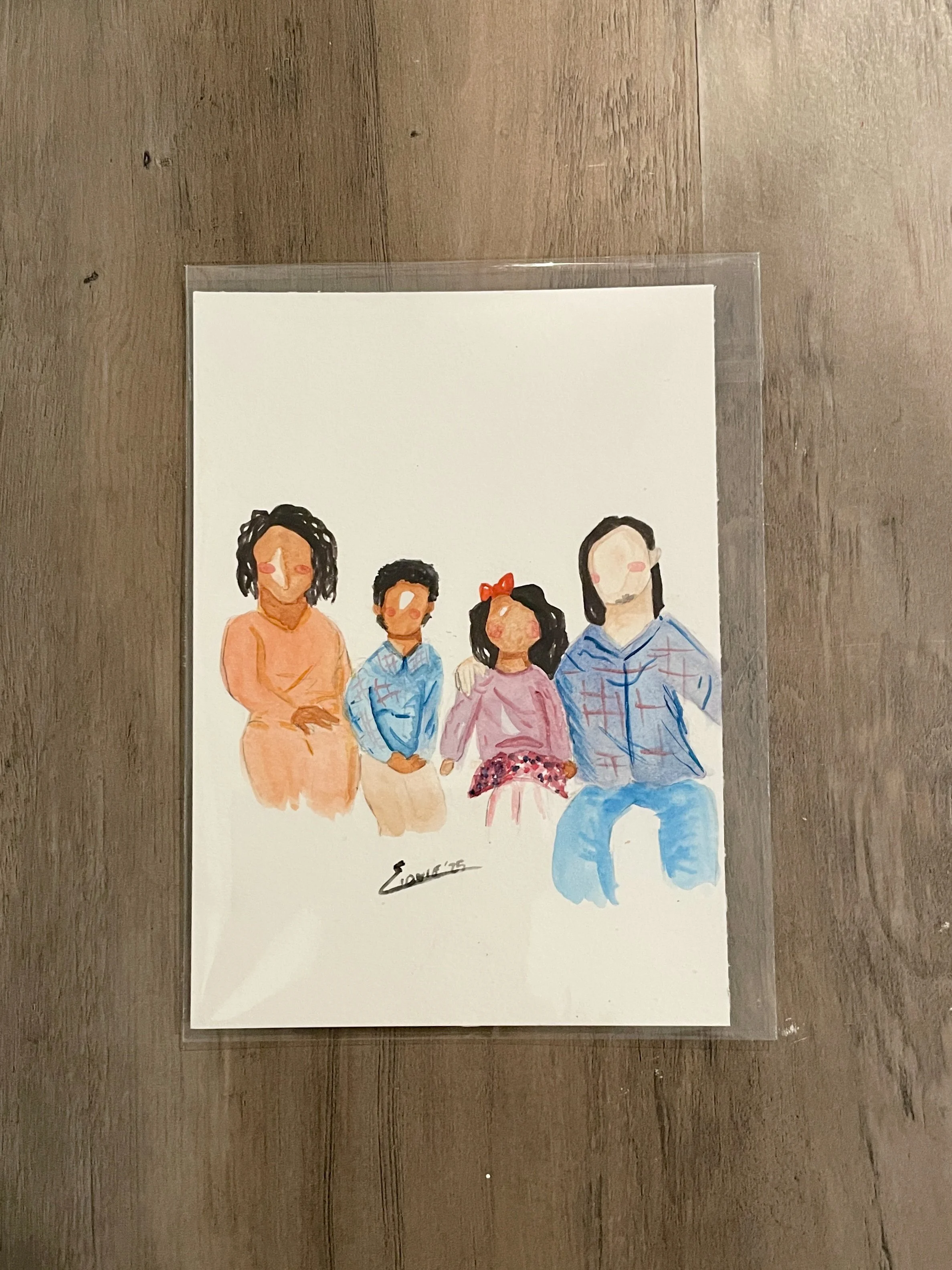 Hi, I’m Elovie. My grandma introduced me to watercolors when I was 8, and I fell in love with painting. I realized I also loved making people smile, so I started creating faceless portraits that do both. I paint them for gifts or at events, keeping each one simple but meaningful. Portraits range from $5–$20 per piece, and every piece has its own personal, one-of-a-kind flair.